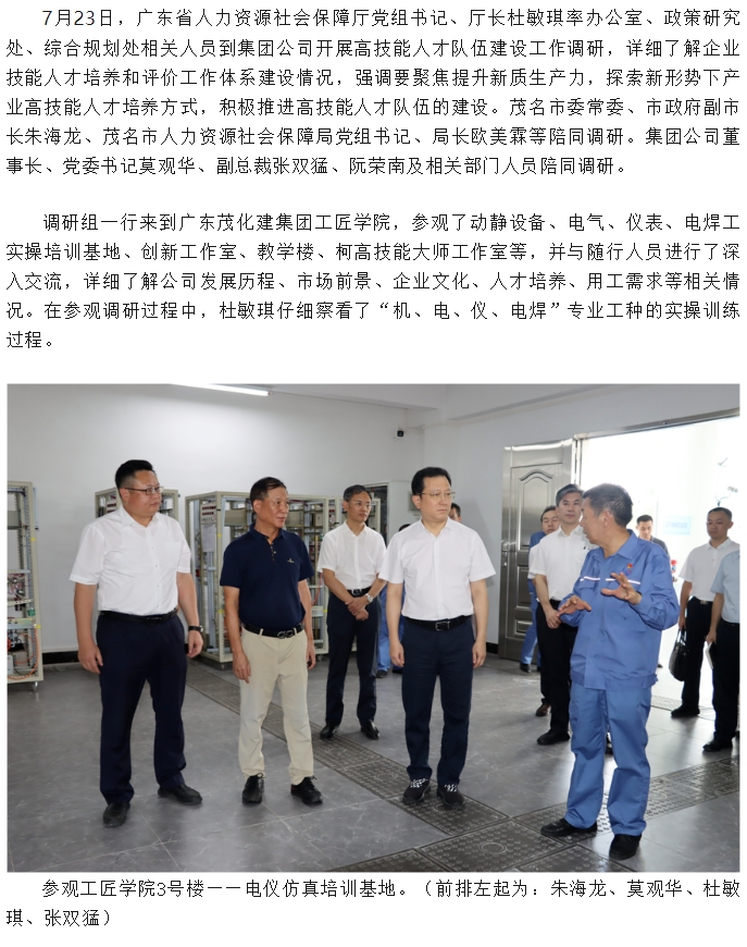 廣東省人社廳到集團公司調研高技能人才隊伍建設工作