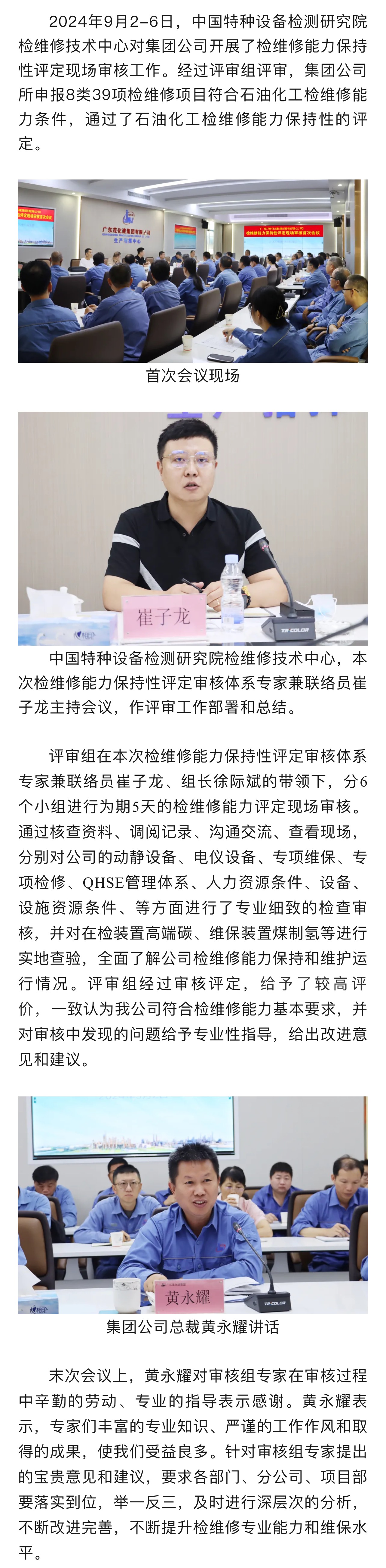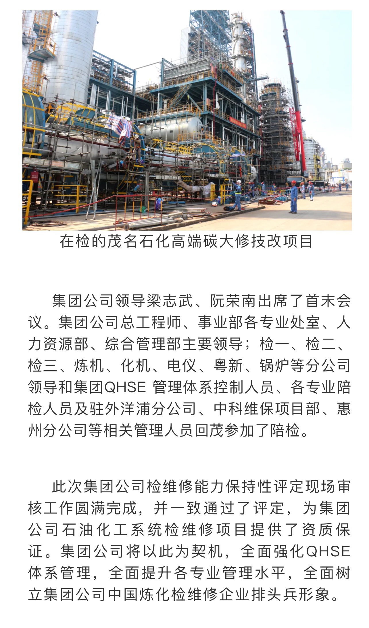 集團公司檢維修能力保持性評定現場審核工作圓滿完成