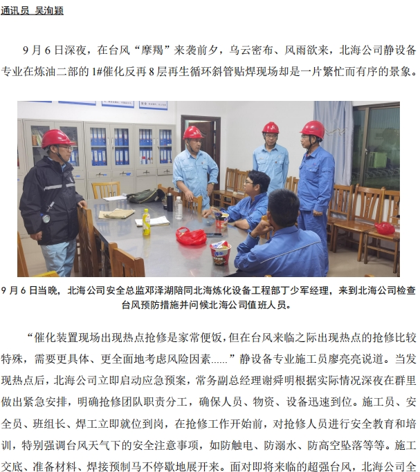 臺(tái)風(fēng)前夕!北海公司對(duì) 1#催化再生循環(huán)斜管貼焊搶險(xiǎn)