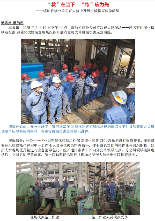 煉油機(jī)修分公司在大修中開展機(jī)械傷害應(yīng)急演練