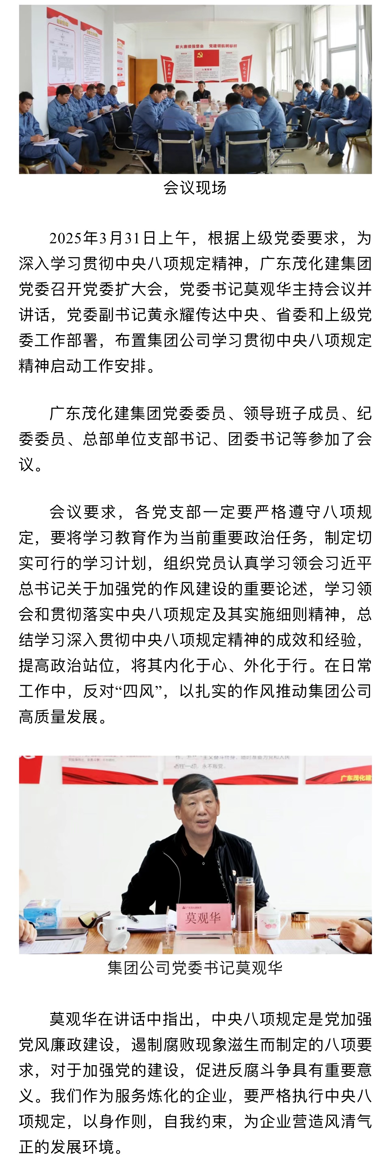 廣東茂化建集團(tuán)黨委召開(kāi)貫徹中央八項(xiàng)規(guī)定精神學(xué)習(xí)教育部署啟動(dòng)會(huì)