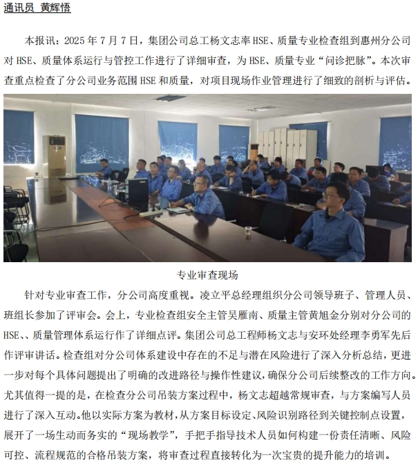 總部專家為惠州分公司體系管理運(yùn)行“問診把脈”